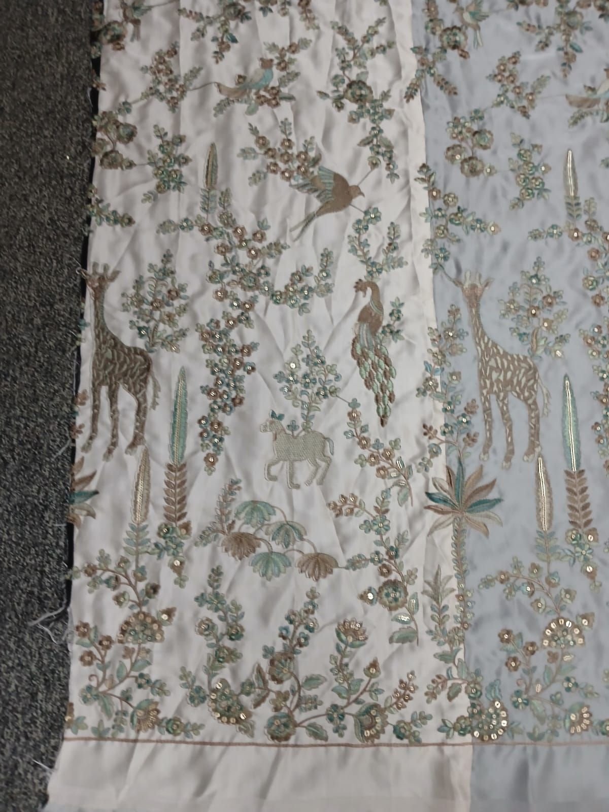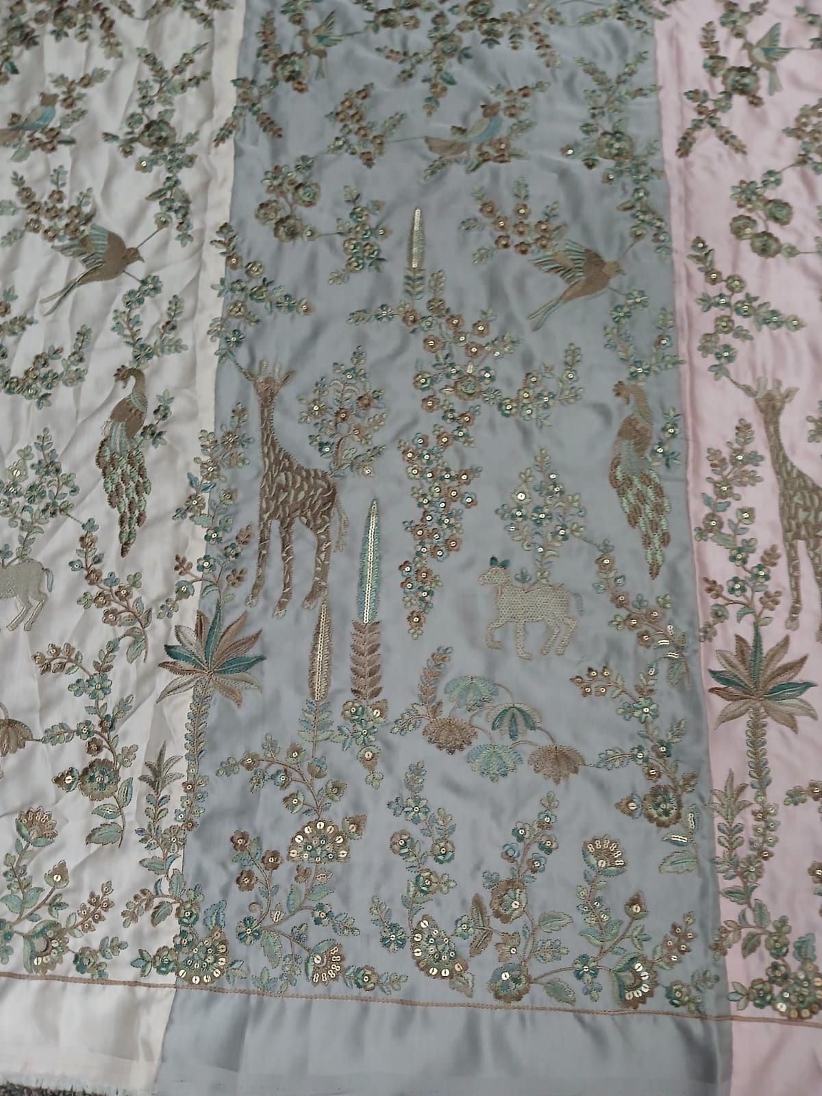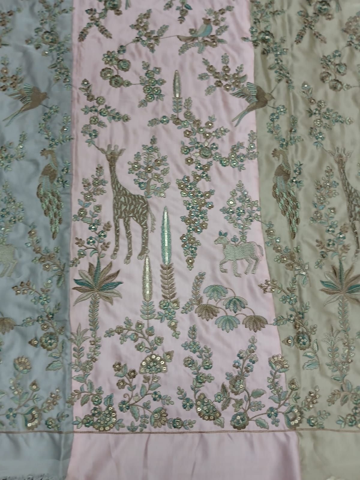 | Thread / Material Type | Zari Thread, Gold Cut Dana, Sequins, White Seed Beads |